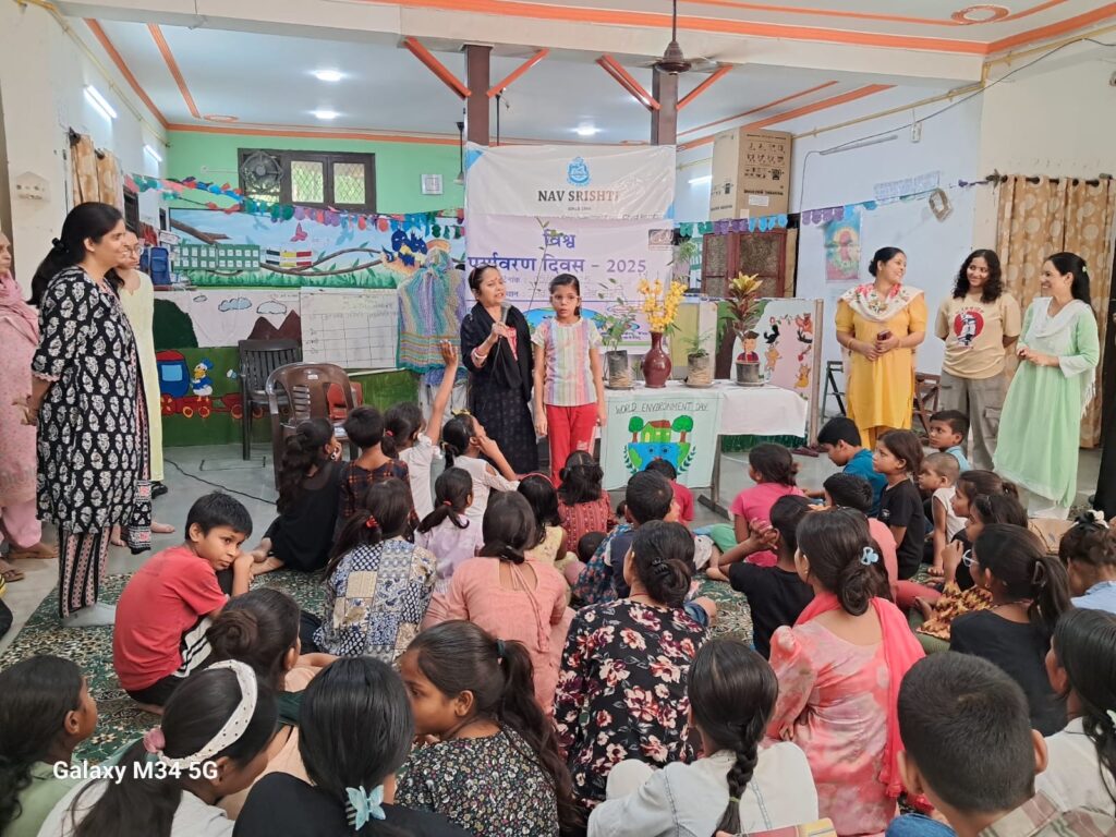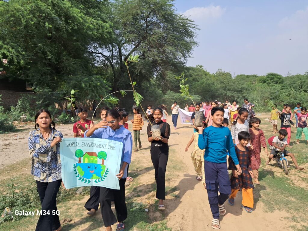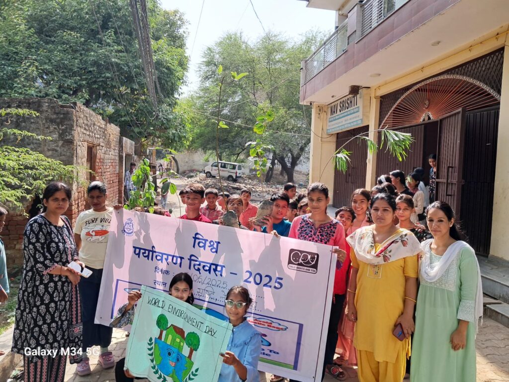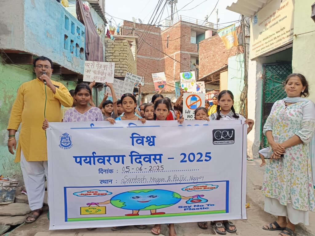On June 5, 2025, Nav Srishti, in collaboration with Child Rights and You, organized World Environment Day celebrations at four key locations across Delhi-NCR — Neb Sarai (Delhi), Nangloi (Delhi), Santosh Nagar, and Rajeev Nagar (Faridabad).